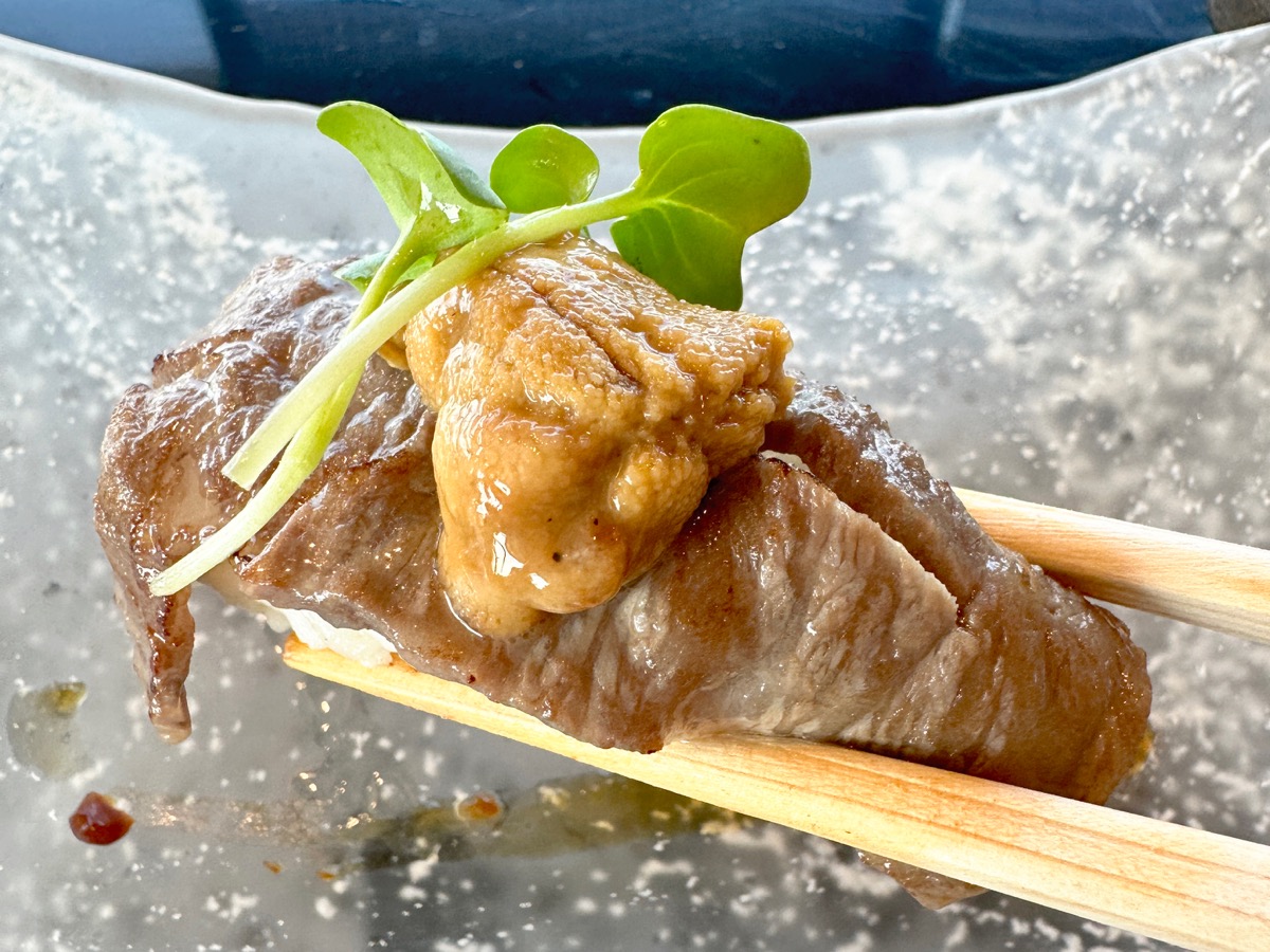 ・大阪産ウメビーフの肉寿司 −雲丹添え 紀州梅の香りとともに−
