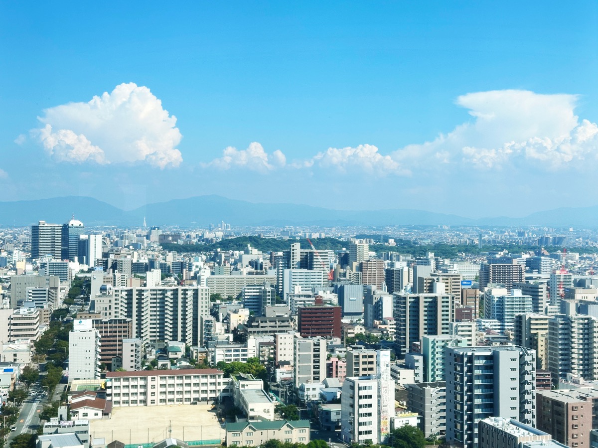 角度を変えると今度は大阪都市部の風景が広がります。頭7つくらい飛び抜けて高いのは、高さ300mの商業施設「あべのハルカス」。こちら側の景色は夜景がとても綺麗だろうな〜!
