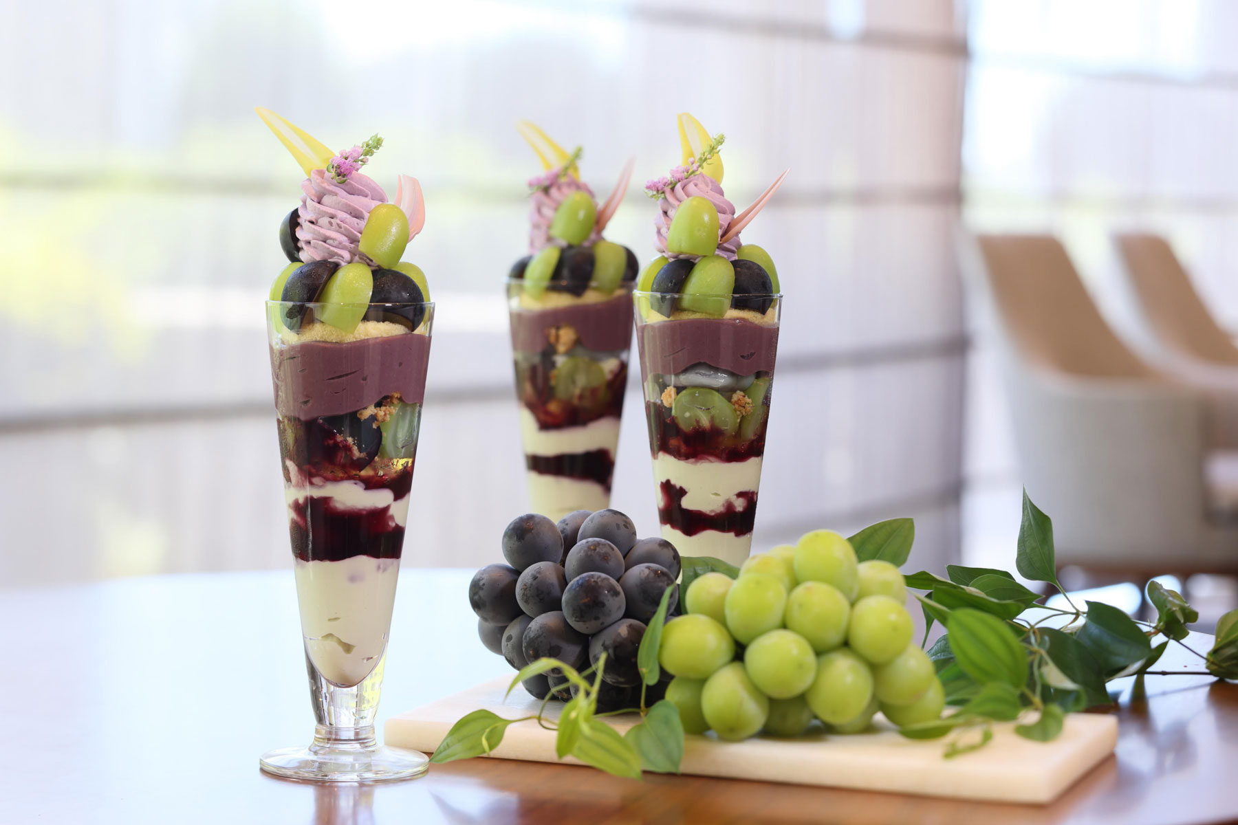 シャインマスカットも好きだケド、巨峰も捨てがたい……。それなら両方使用した「シャインマスカットと巨峰のパフェ」なんていかがでしょ? 贅沢な組み合わせですし、アーティスティックなビジュアルも◎。