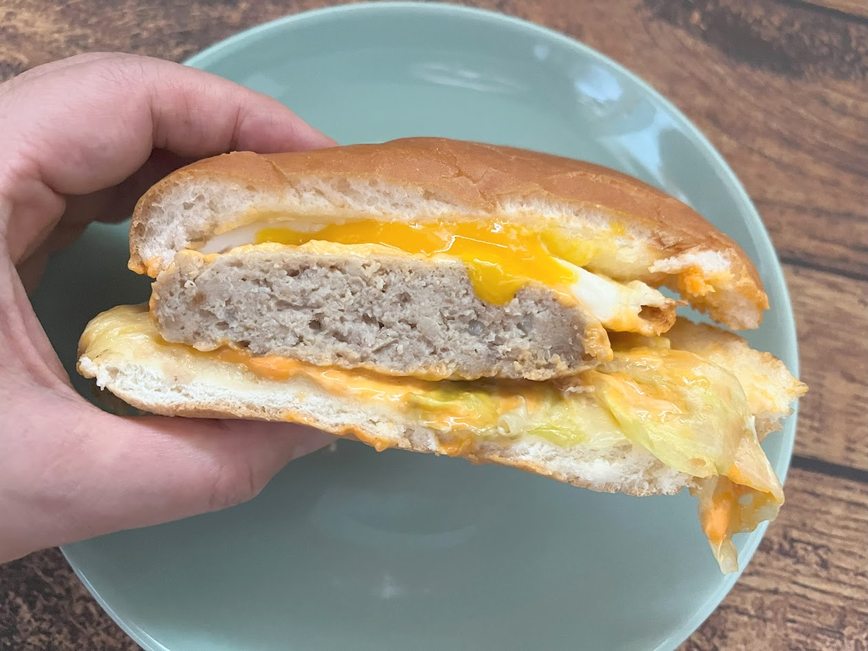 2種のバーガーに使用されているエッグオムレツは、黄身がとろとろ。加熱加工して半熟っぽい食感を生み出しているそうですが、このとろとろ具合がおいしさを底上げしているように感じました。