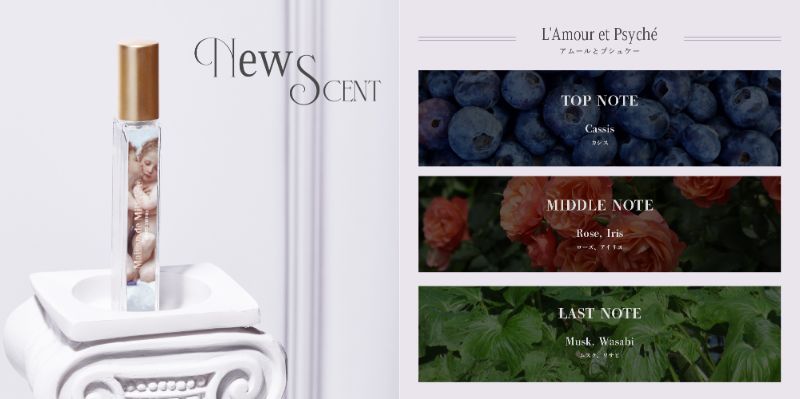 フレグランスのテーマはずばり「絵画」です。クリムト『接吻』やブグロー『アムールとプシュケー』をイメージしたフレグランスって……さて、どんな香りだと思う?