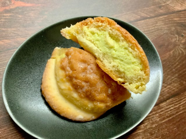 食べてみると、クッキー生地のサクサク、パン生地のふわふわ、そしてクリームのトロッとした3つの食感が1度にお口の中で広がって至福の時がスタート。