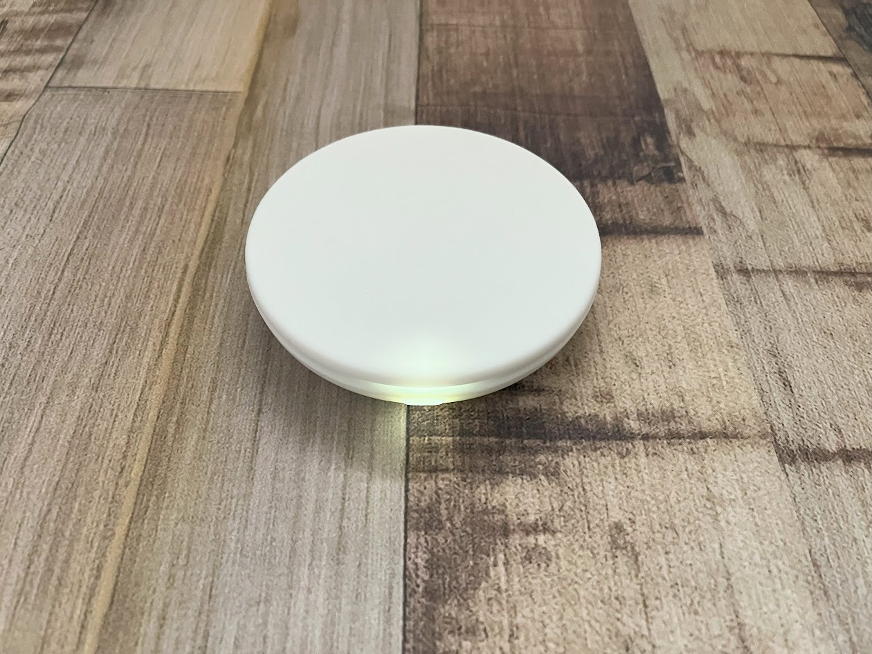 編集部に実物が届いたのでさっそくチェックしてみましたが、第1印象は「シンプルなデザインのコースター」という感じ。側面にあるスイッチと充電用ケーブル差し込み口が “デバイスっぽさ” を醸し出しています。