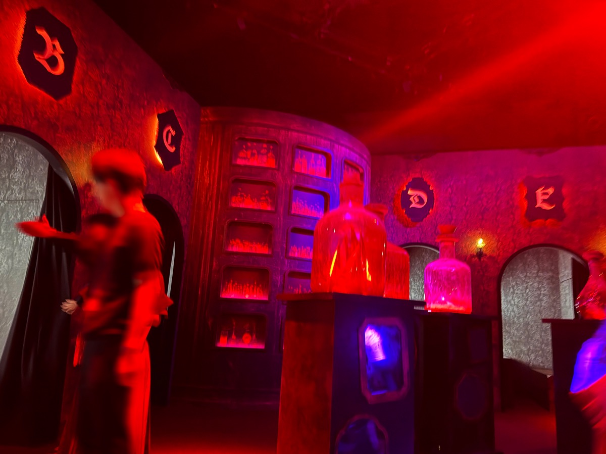 黒いフードを被った案内人による4人の魔女の紹介のあと、館へ入ると赤と黒に彩られた空間が表れました。こりゃあ、しっかりKATEだわ!