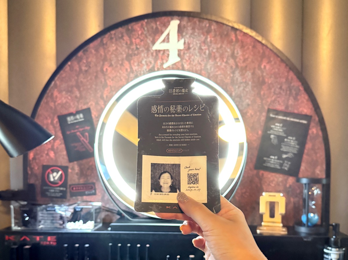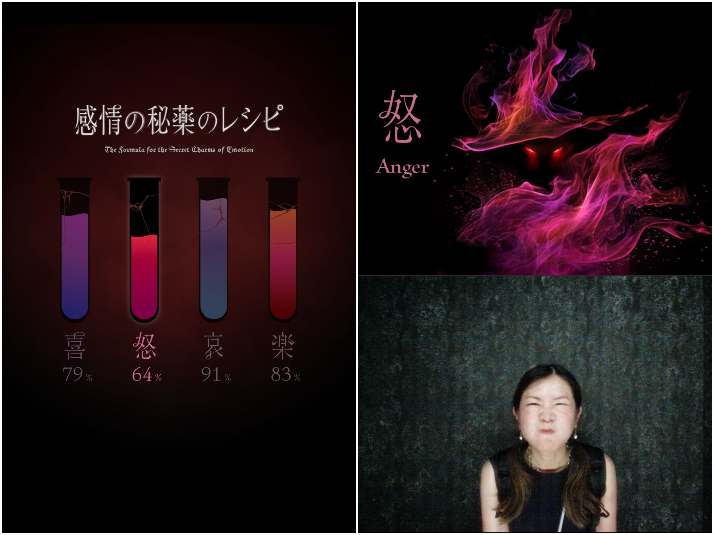 ブースを出たら魔女たちが調合してくれた「感情の秘薬」を受け取り、QRコードで確認。私は、獲物を追い続ける「憤怒の山猫」でした。自分が捧げた表情もあわせて確認できます。