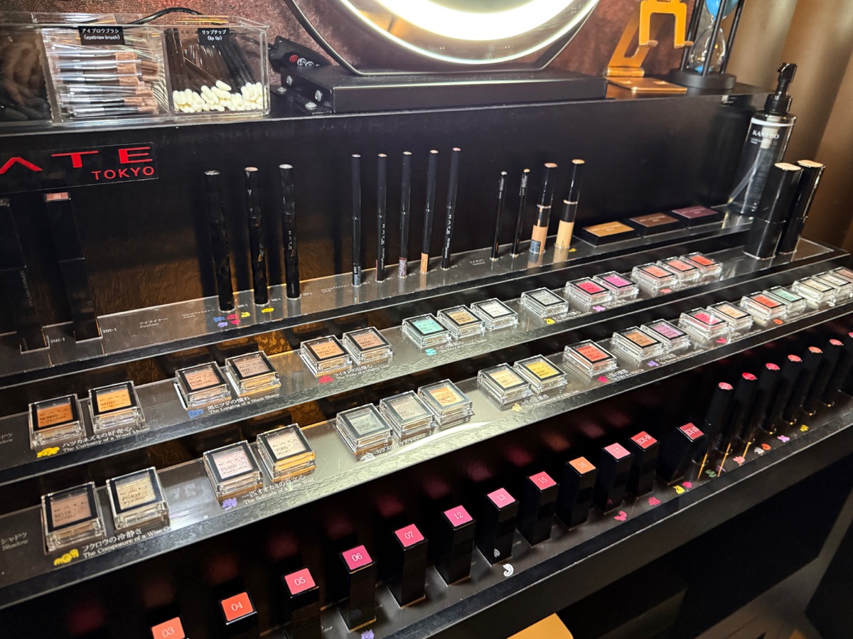 ドレッサーにはKATEの人気アイテムがズラリ! 各種チップやコットンが完備されていて、安心してレシピに沿ったメイクを楽しめます。