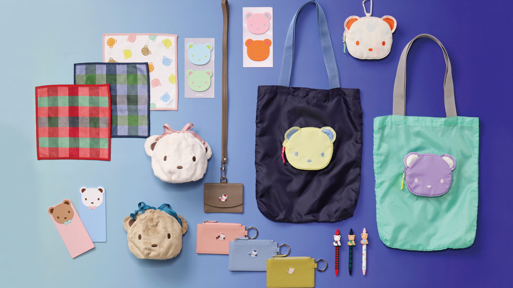 折りたたみバッグ、フラグメントケース、ネームホルダー、タオルハンカチ、マスコット付きボールペン、巾着、マルチスタンドシート、付箋