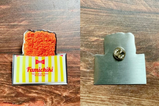 小さめサイズながら存在感がすごいファミチキがそのままプリントされた「ファミチキ ピンバッジ」。こちらもバッグや帽子に付ければ、さりげなくファミチキ愛をアピールできます。