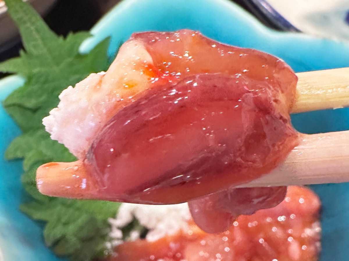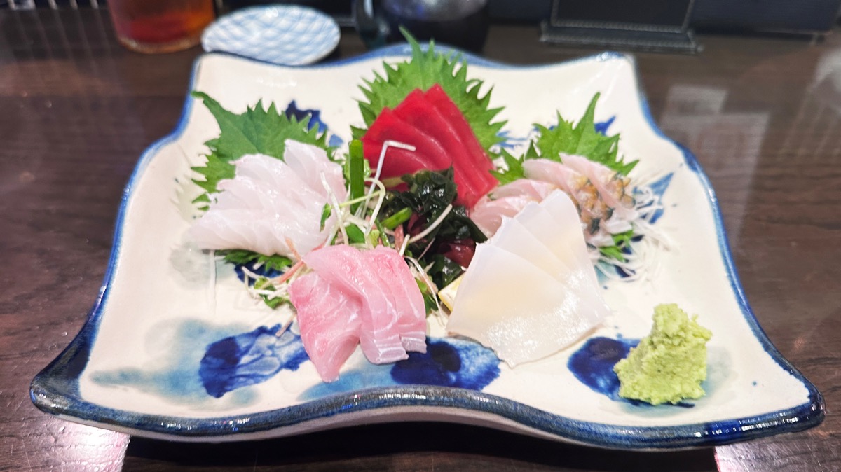まずはお刺身食べたいよね!ってことで注文。全体的にムチムチっとした食感で、食べ慣れたお刺身と全然違うのが面白〜い!