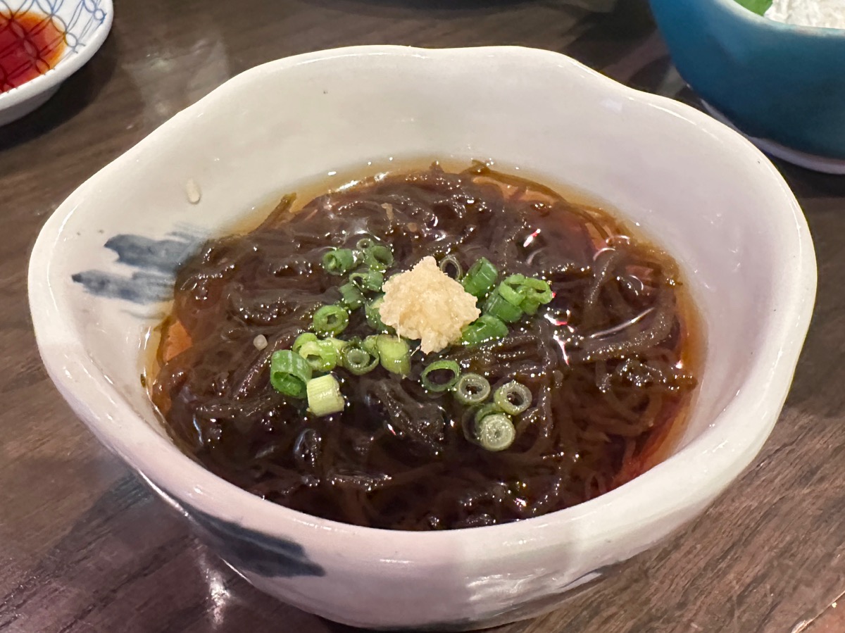 沖縄産のもずく、有名なだけあって普段食べているカップ入りもずく酢とは全然違いました。