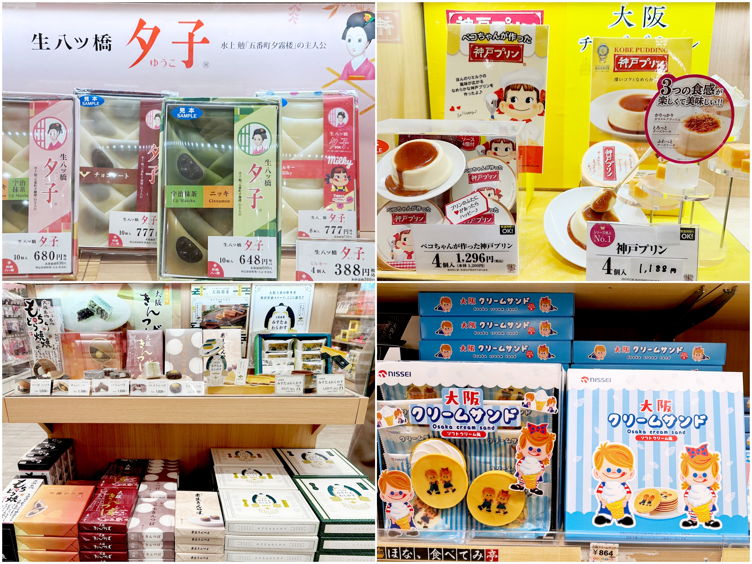 きんつばや生八ツ橋、神戸プリンなどの定番みやげもあり、ここだけでも悩ましいほどさまざまな関西土産が手に入りますよ〜!