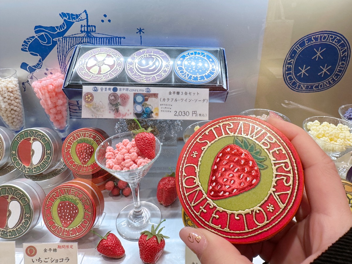 どこかアンティーク感漂う素敵な缶入りのチョコがけ金平糖も。こちらは京都の宇治園が展開する「星果庵」の金平糖。
