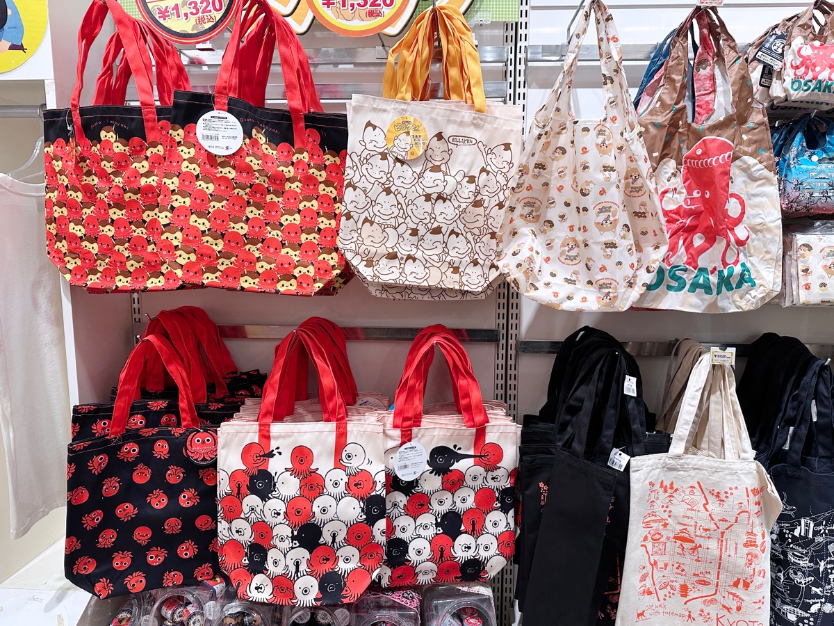 ビリケンのショッピングバッグやたこ焼き模様のショッピングバッグも。