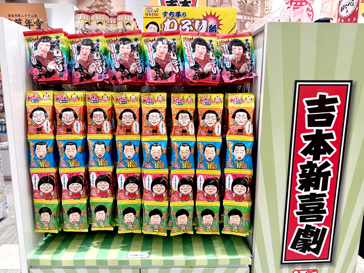 ご紹介したいのは、なんばグランド花月2階にある「よしもとおみやげもん横丁」。名前だけだとよしもとグッズのおみやげ屋さんのように思えますが、実際に行ってみると大阪を中心に関西近郊のおみやげがたっくさん販売されています。