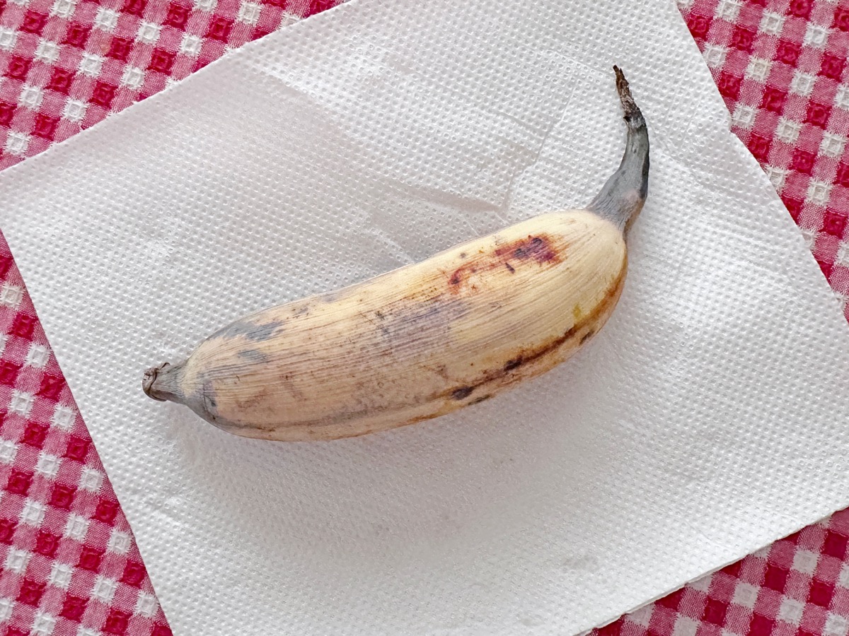 どうやら10日〜12日ほど追熟させるものなのだそう! 皮がほぼ黒ずんで薄くなったら食べ頃なのだとか。マジか〜。せっかく買ってきた銀バナナ、食べる前に腐っちゃったら嫌だなあと思いつつ、情報を信じてグッと待つことに。