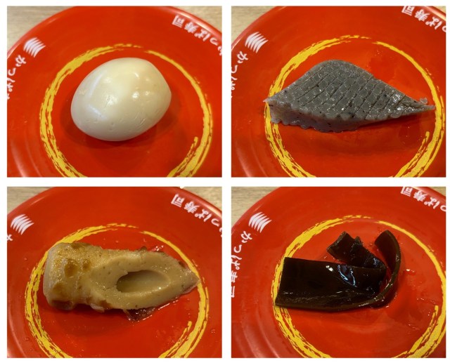 今年2月に一部店舗で発売され好評だったことから、このたびかっぱ寿司全店舗で発売されることとなったというおでん。ラインナップは次の6種類です。