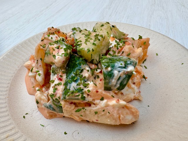ひとりでご飯がてらサクッと飲みたい気分なら、「やみつき!夏の油そば」(1300円)がオススメ。油そばとは言っても、パクチーや紫玉ねぎが目にも舌にも華やか! エスニック風でおしゃれです。