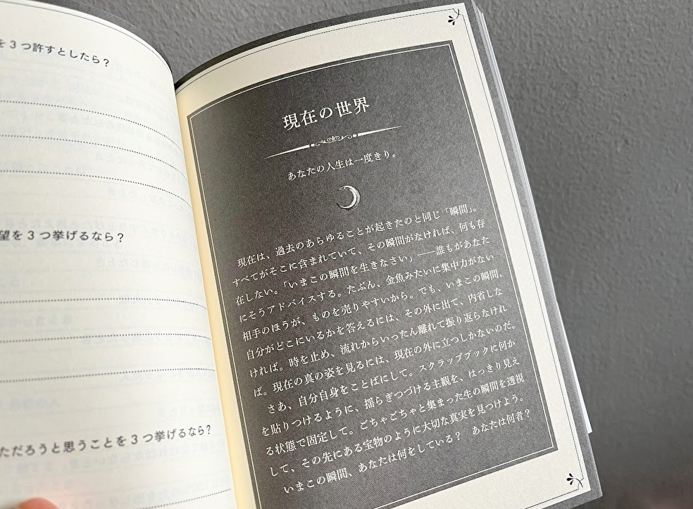SNSだけでなく、普段の生活においても「自分を偽る仮面」をつけてしまう人は少なくない。けれど、この本と向き合う時間だけは仮面を外せるのだそう。どんな本なのかさっそくページをめくってみると……?