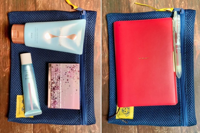 メッシュポーチはコスメ&スキンケアポーチとしても、手帳や文具入れとしても使える万能サイズ。