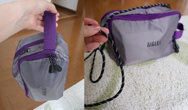 縦にしてハンドルを持てばハンドバッグとして持ち歩けますし、付属のショルダーストラップを付ければポシェットにもなります。