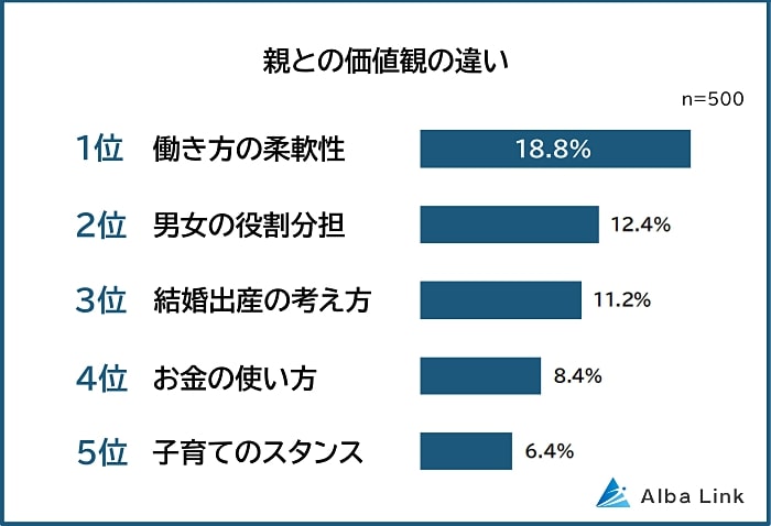 親世代は「安定した会社で正社員として働く」ことを重視する傾向にありますが、当時とは社会的背景が変わってしまったこともあり、子ども世代は違和感を感じるよう。