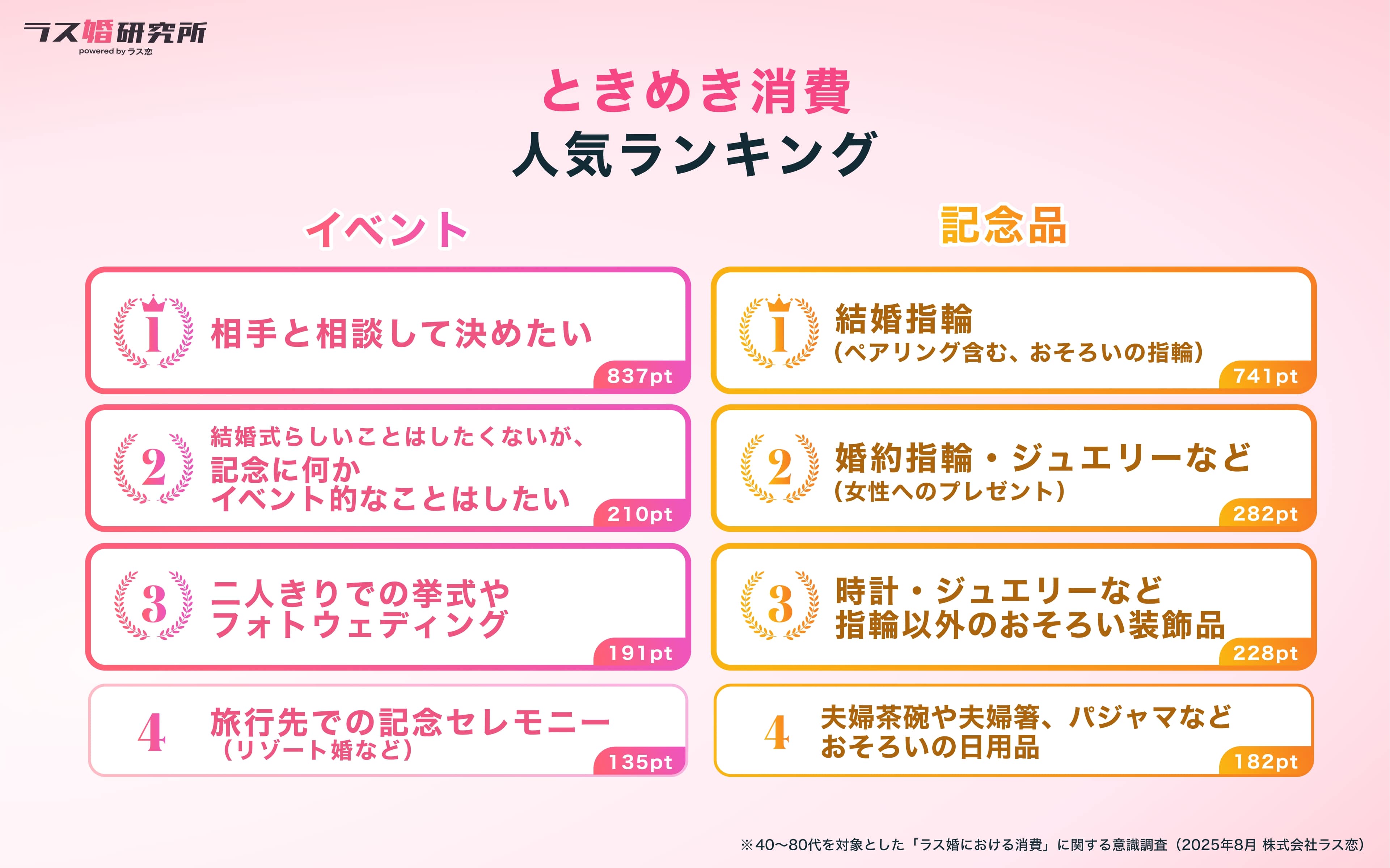 ちなみに、婚姻届や同居という伝統的なかたちにとらわれないからこそ、2人の絆を「記念のイベント」や「記念品」でたしかめたいと考える人は多いよう。
