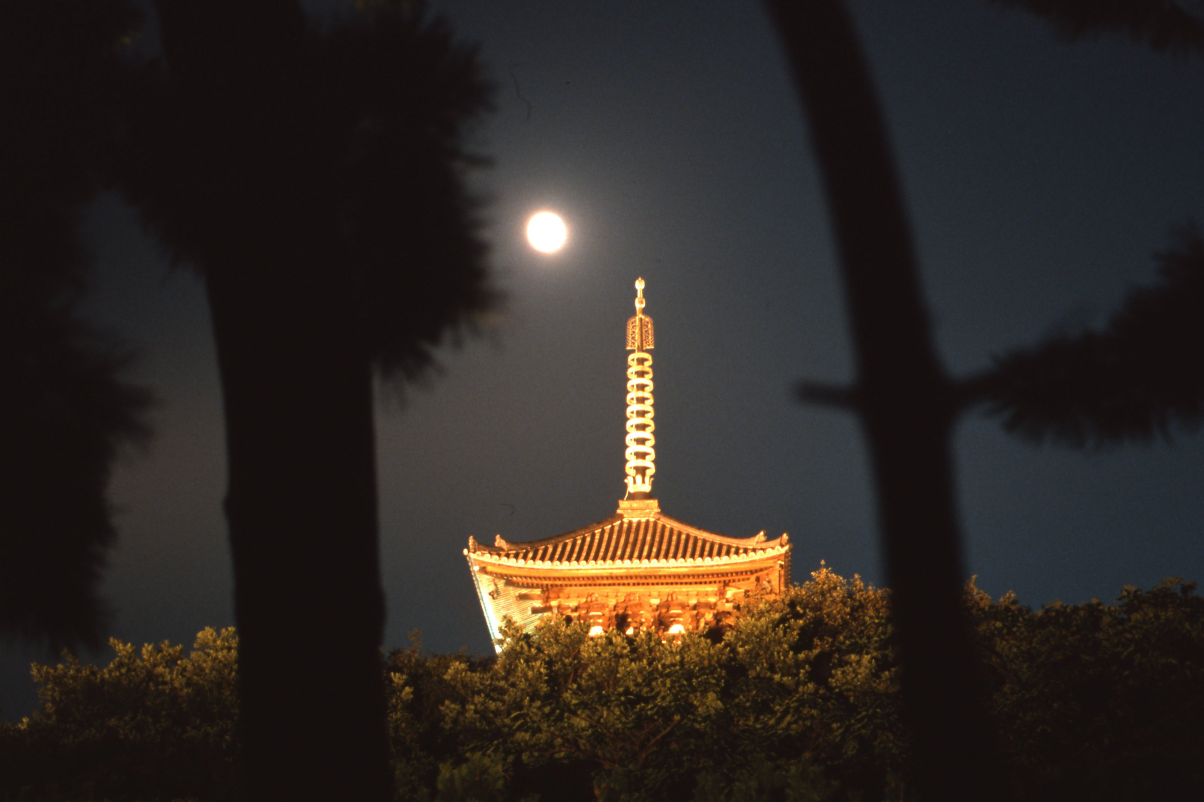 ライトアップされた古建築を眺めながら、日替わりで開催される「筝・尺八アンサンブル」「雅楽」「日本舞踊」「サックスとピアノ」「薩摩琵琶」を鑑賞するひととき。雅な雰囲気で日本古来のお月見を楽しみたい人に◎。