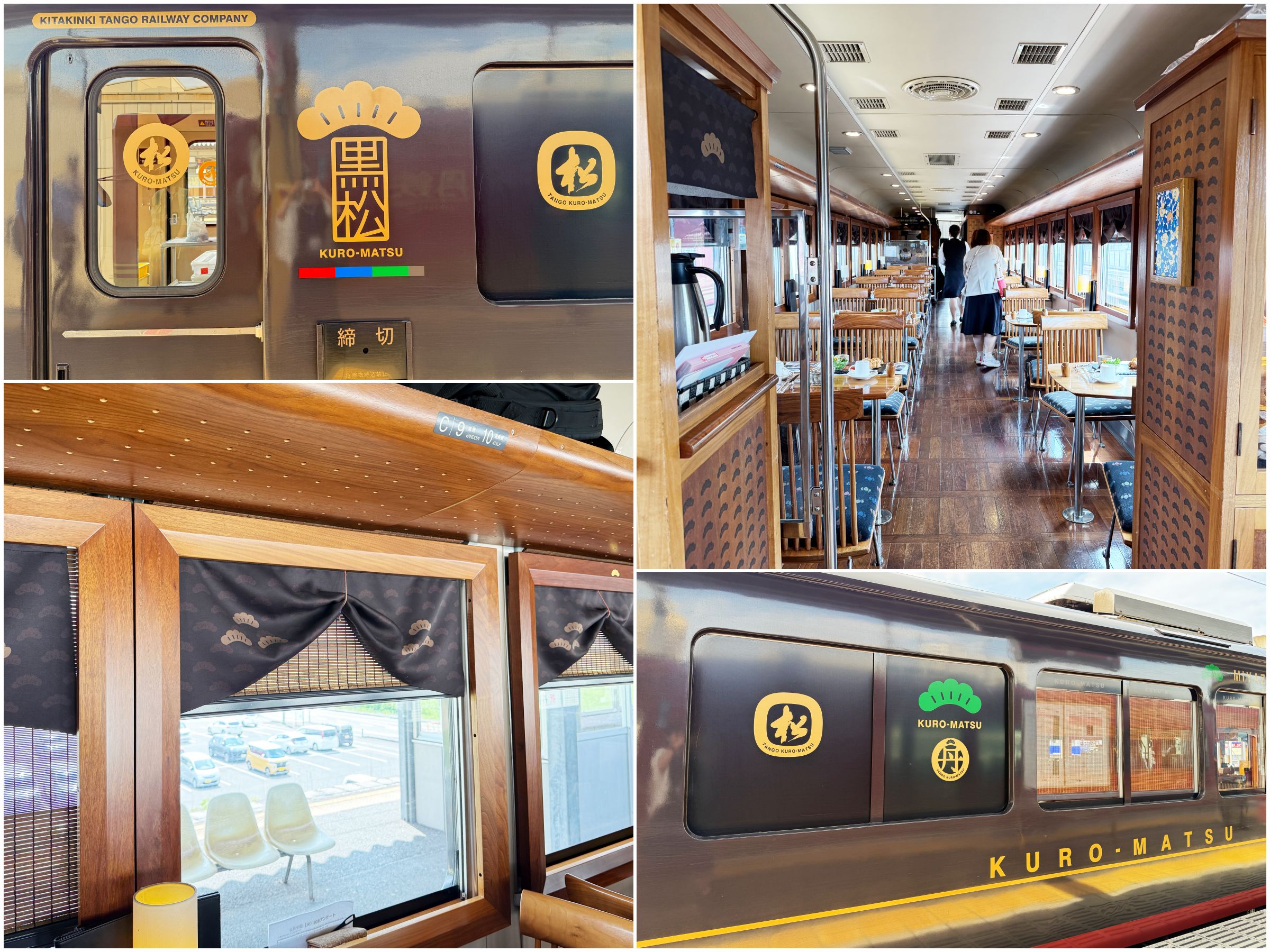 乗車するのは、黒くてツヤツヤの「丹後くろまつ号」です。日本三景のひとつである天橋立の「白砂青松」、その風景を象徴する「松」がテーマなんですって。美しい! カッコいい! ロゴ素敵!