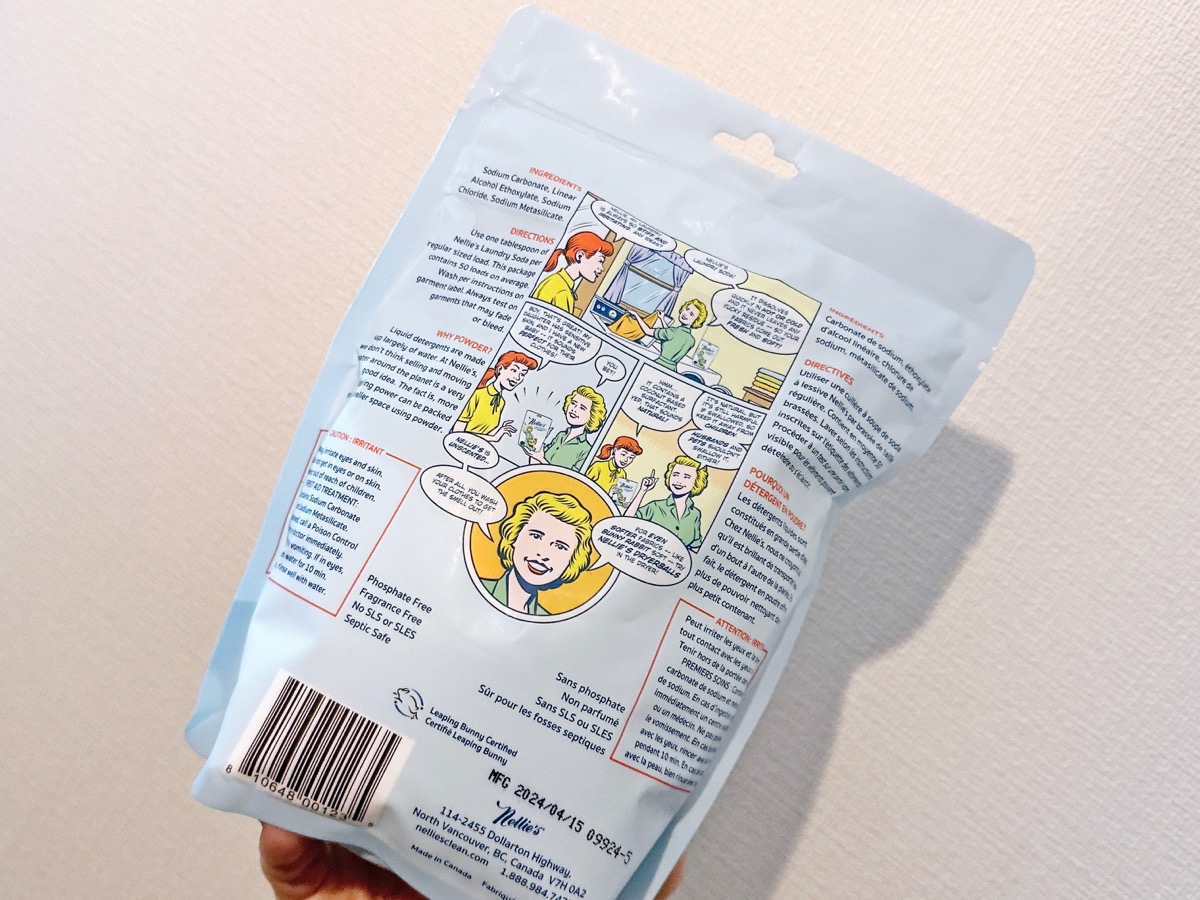 使ってみたのはiHerbで購入できる「Nellie’s, ランドリーソーダ、無香料、50回分、726g」(1919円)。