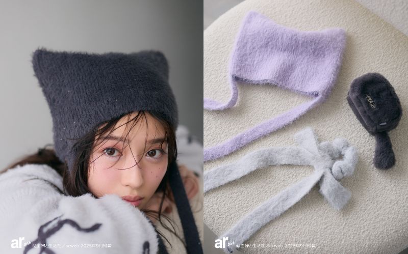 猫耳バラクラバや猫耳ルームシューズ、長いリボンをあしらったシュシュなど、小物も充実していますよ~!
