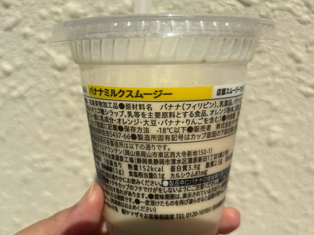 ちなみにカロリーは152calで、セブン-イレブンの他の定番スムージーよりはちょっぴり高め。でもでも、おいしくてヘルシーですので、皆さんもぜひ楽しんでみてください♪ 特にバナナ好きさんなら気に入ること間違いなしかと思いますよ!