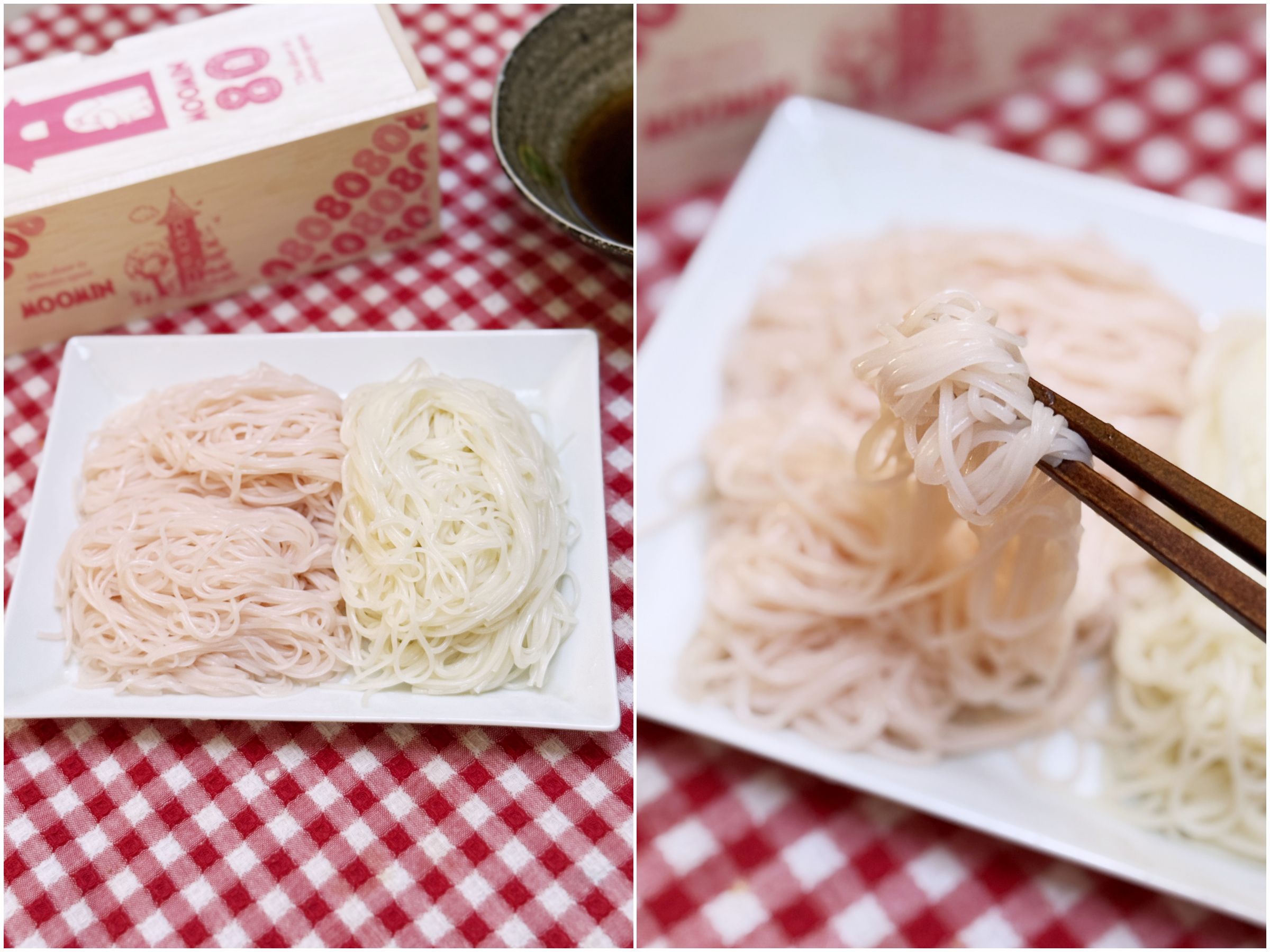 なお素麺そのものは、ノーマルのものとやさしいピンク色の2種。紙帯の「三輪素麺」もちゃんとムーミンらしい書体です。