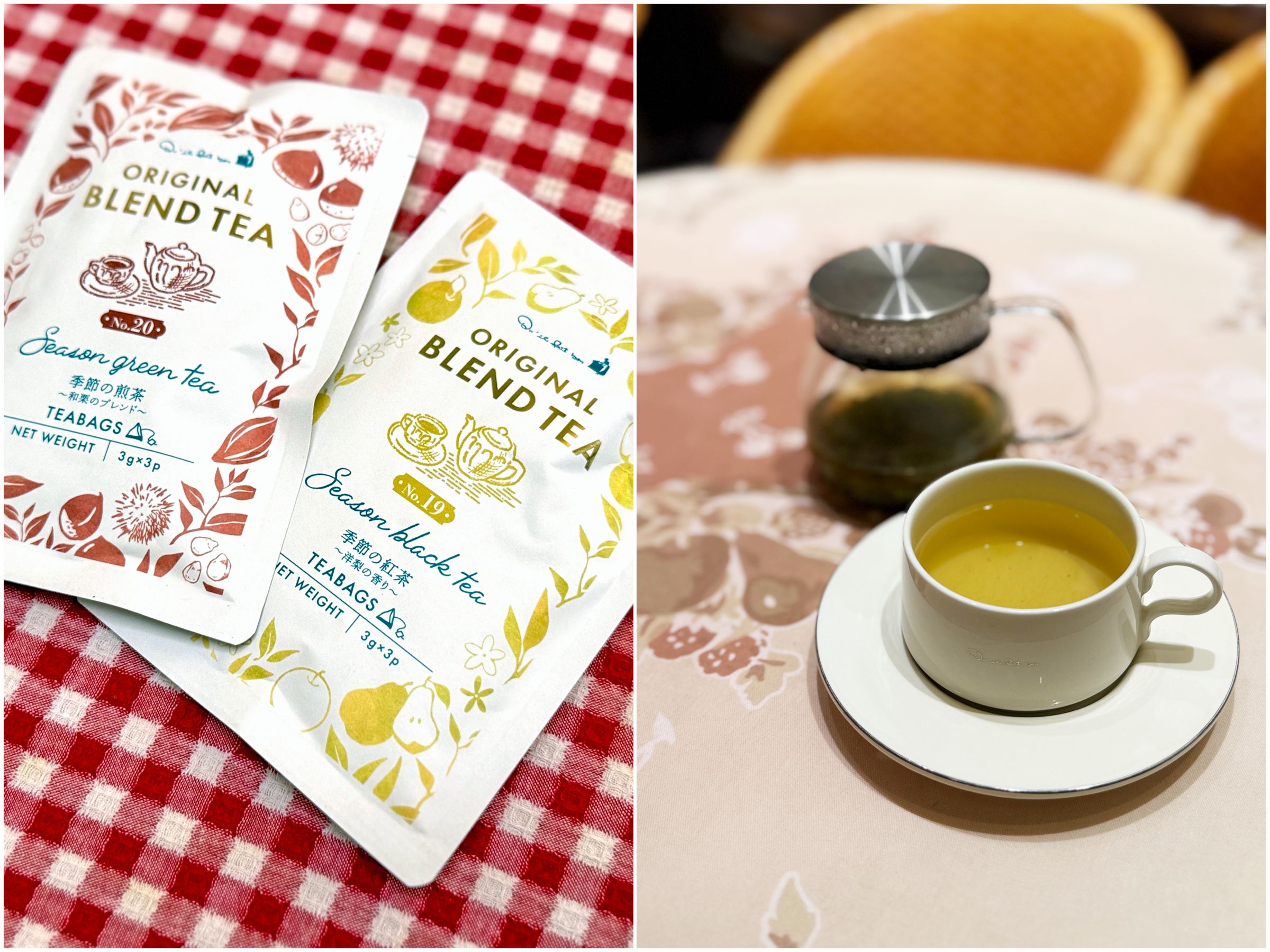 また、タルトに合うお茶をテーマにした秋の新作ブレンドティー「季節の煎茶~和栗のブレンド~」「季節の紅茶~洋梨の香り~」も登場(ティーバッグ 3個入:594円/8個入:1296円)。