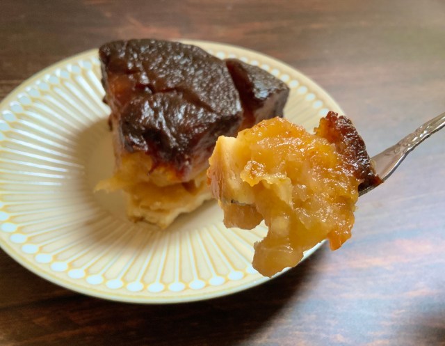 崩れないように気をつけてカットすると、断面は見ただけでしっかり煮詰めてあるのが伝わってくる黄金色でした。