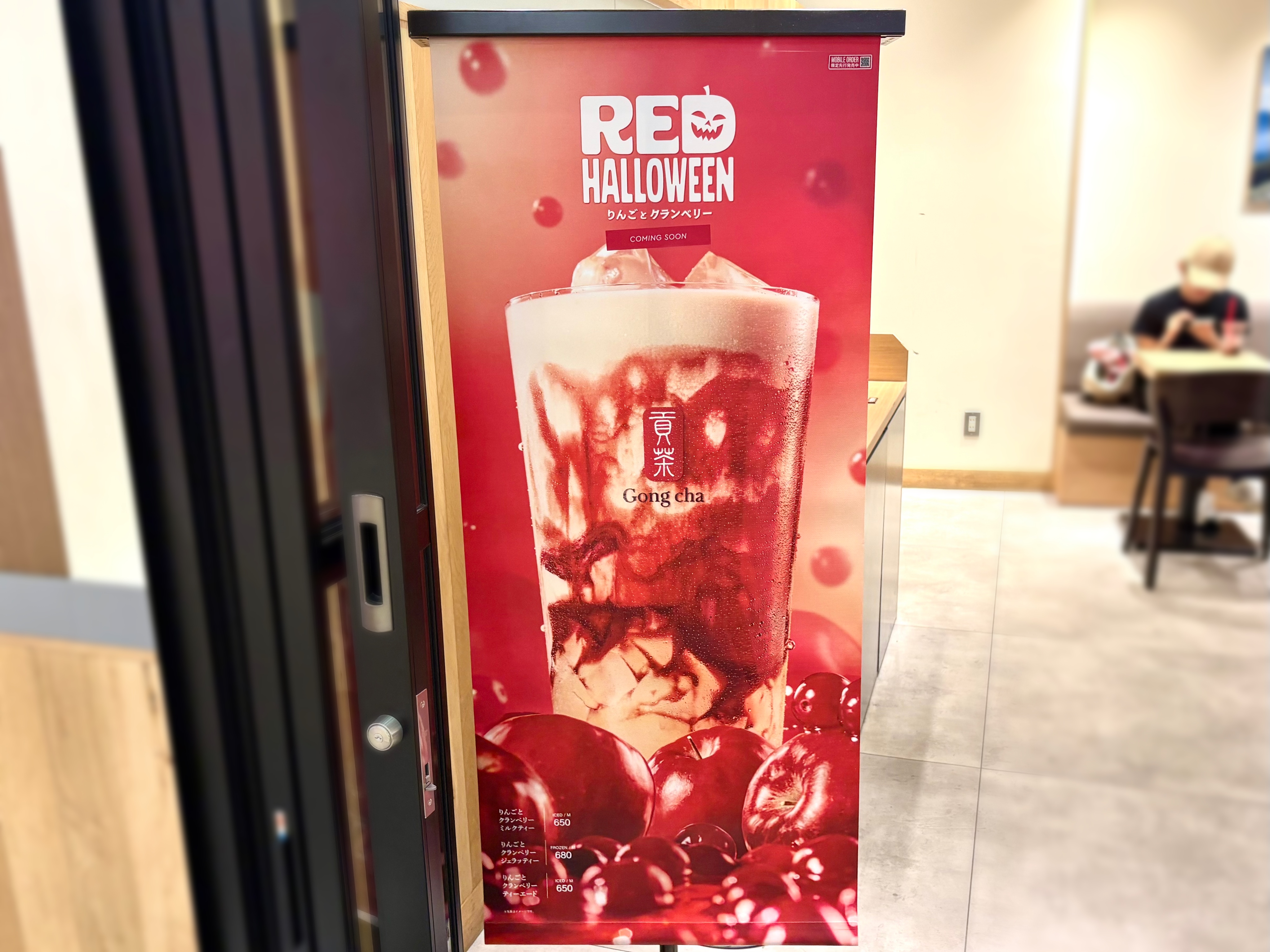 まだモバイルオーダーでしか購入できない日にやってきたということもあり、この日のゴンチャは「RED HALLOWEEN」っぽい雰囲気はあまりなし。