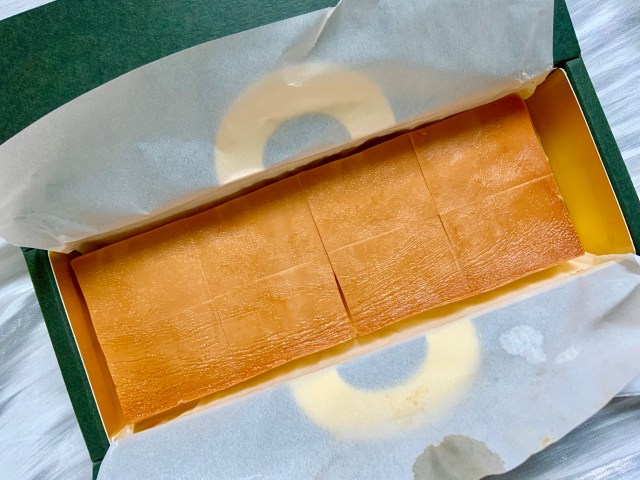 プリンは大きな長方形ですが、最初から8等分にカットされているのでナイフは不要です。