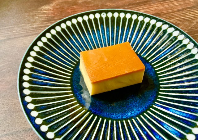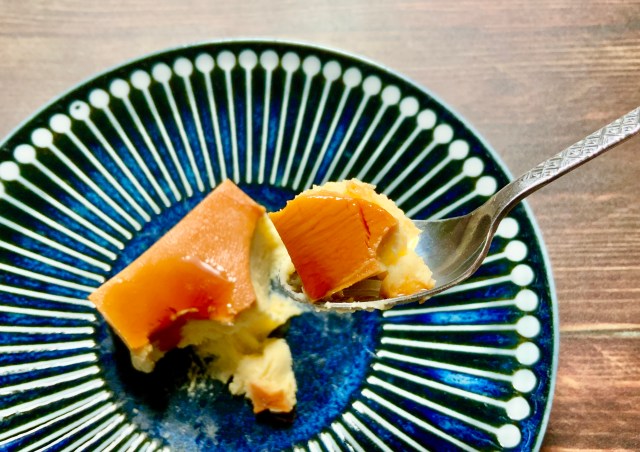 まずはそのままいただいてみると……「もっちり」や「むっちり」とたとえたくなるような、しっかり固めの食感でした。固めプリン好きにはたまらないやつ!