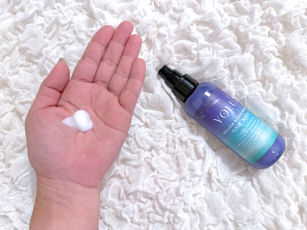 今回使ったのは、10月1日に発売されたばかりのYOLU「メロウナイトリペアシリーズ」のシャンプー、トリートメント、ヘアミルク(各1650円)。ヘアミルクはブランド初登場です。