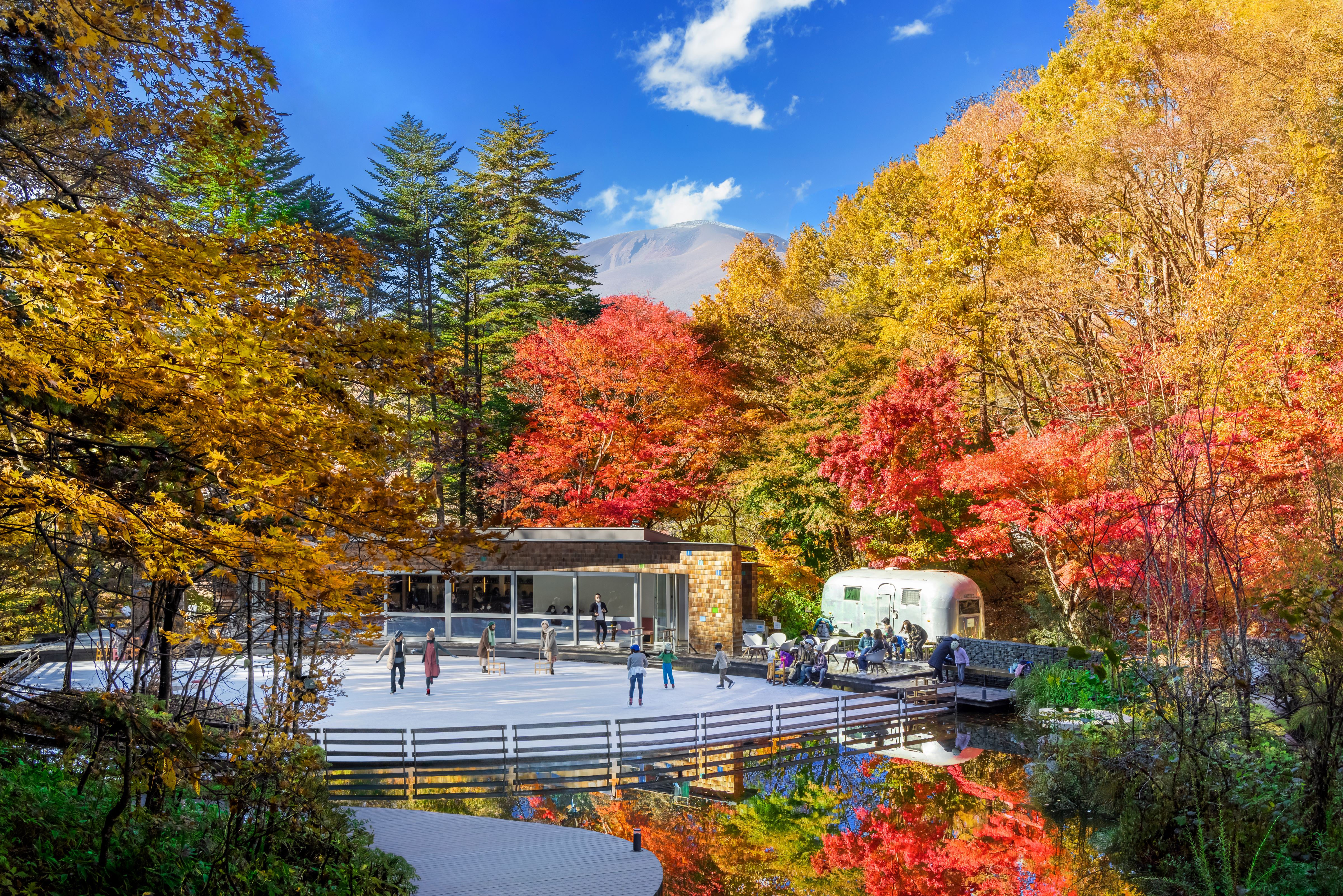 紅葉シーズンにオープンする秋冬限定スケートリンク。野鳥や動物が生息する軽井沢の森に隣接しており、美しい自然を五感で感じながらスケートを堪能できちゃうんです。