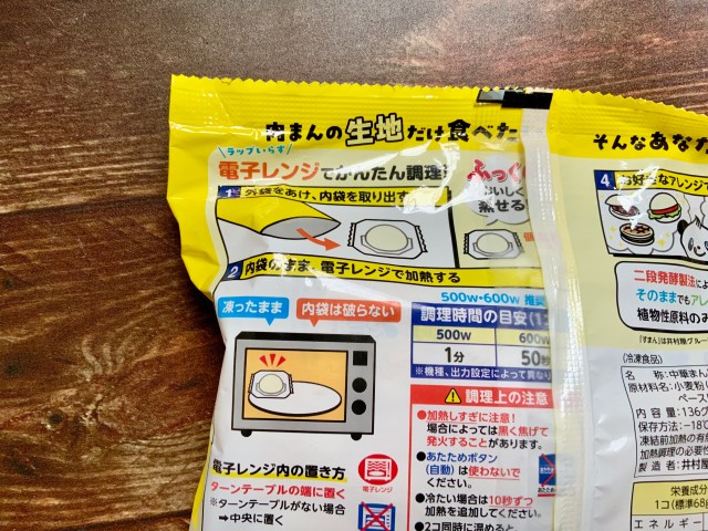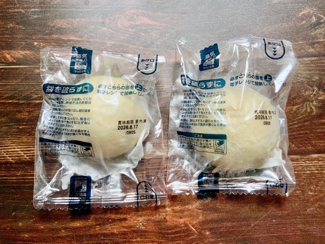 「すまん」は冷凍食品。1パッケージにつき2個入の個包装なので、1個ずつ、お好きな数だけ冷凍状態からレンジでチンできます。