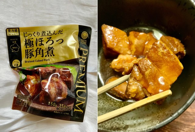 まず感動したのは、パウチ惣菜で売れ筋 NO.1の豚角煮の新商品「じっくり煮込んだ 極ほろっ豚角煮」。お肉が大きくて、お箸で切れるぐらい柔らかくて、味がしっかり染みていて、文句のつけどころがありません!