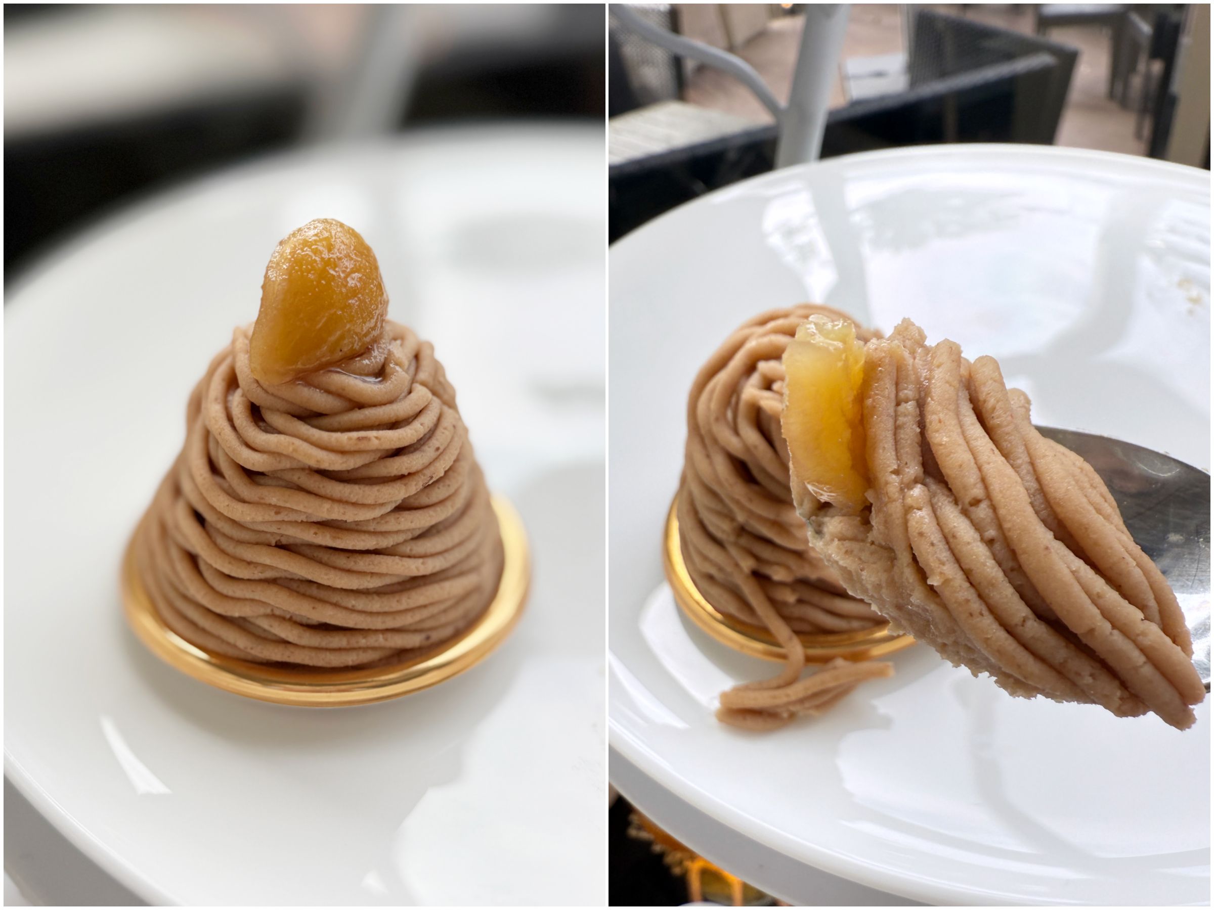 なかにはバラのジャムが仕込まれていて、甘さ一辺倒になりがちなモンブランが、とても複雑で奥行きがある味わいのデザートに仕上げられていました。マロンクリームもとてもなめらかで、ひとくちごとに満足できちゃう。