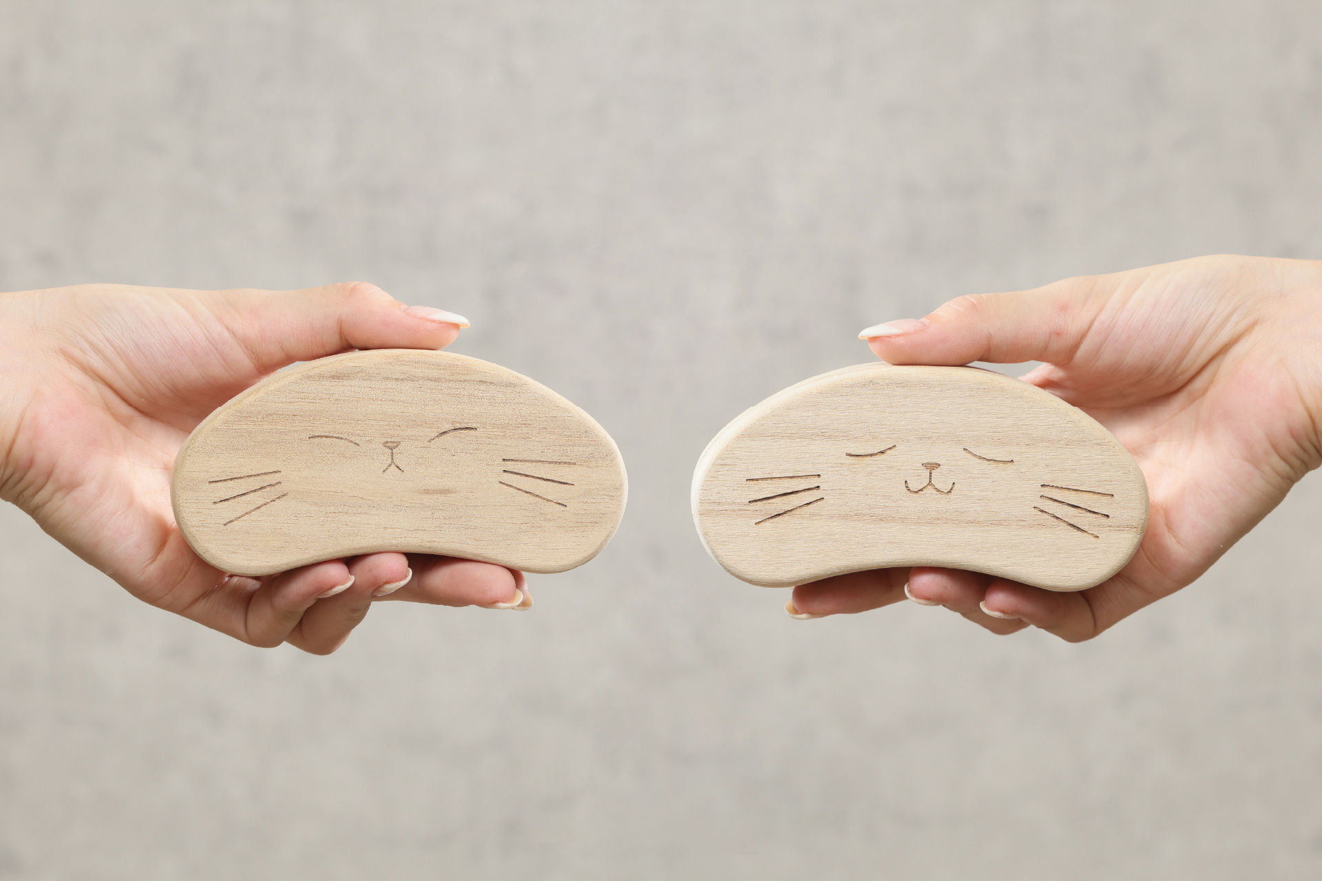 家具・インテリア雑貨の卸売をおこなう不二貿易では、そんなニッチなニーズにこたえた「猫ひげケース」を販売中。2025年10月1日からは新しいデザインとして「きょとん」と「ねむねむ」が仲間入りを果たしました♪