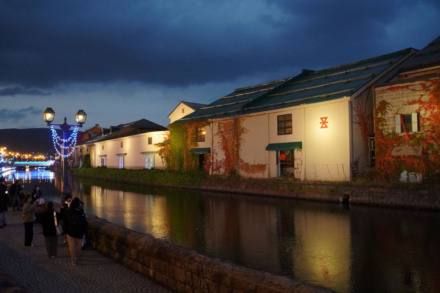 北海道小樽市における観光スポットでもある小樽運河。秋になると、水面に映る紅葉とガス灯の明かり、歴史的な石造倉庫×色づいたツタが織りなす風景を堪能できます。11月からは「青の運河」という特別なライトアップもおこなわれるみたい。