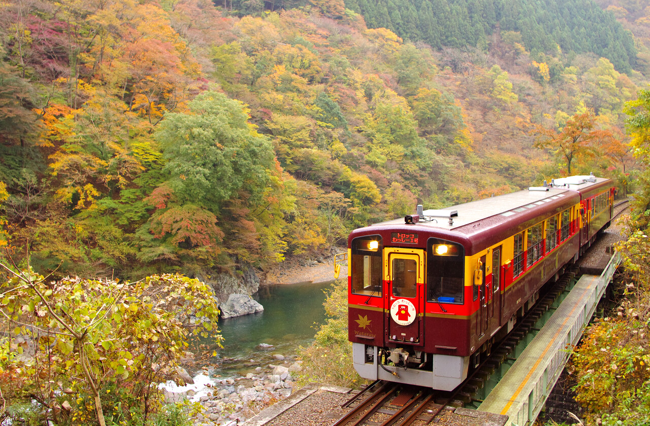 関東屈指の渓谷美×鉄道が融合した絶景スポット。とりわけ「古路瀬渓谷」や「沢入駅〜原向駅」間は写真映え抜群なのだとか。窓ガラスのないトロッコ列車「トロッコわっしー号」から紅葉を眺めたり、登録有形文化財にもなっている木造駅舎の駅を堪能したりと、さまざまな過ごし方ができます。