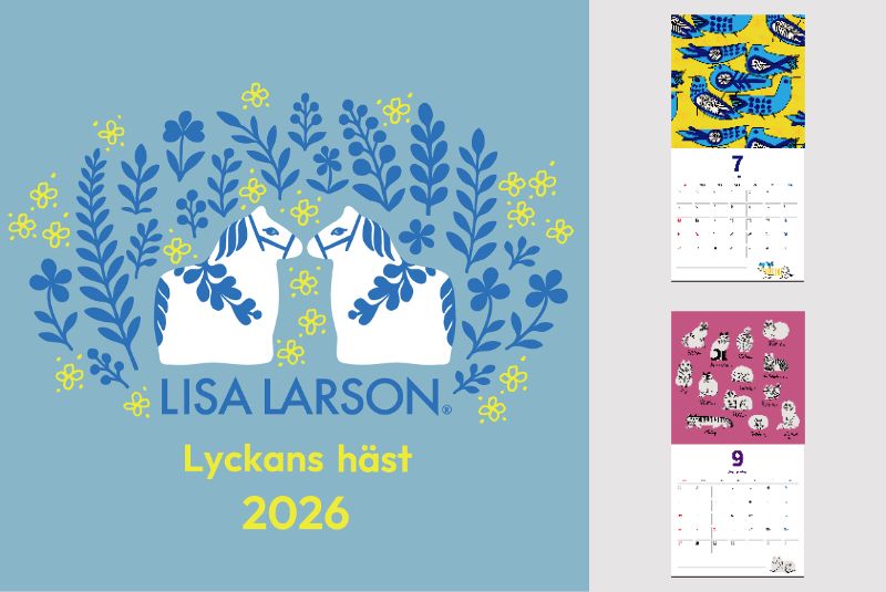 10年以上愛され続けている人気カレンダー。リサ・ラーソンが描く干支の馬(スウェーデンで「幸せを運ぶ馬」として親しまれるモチーフ)をはじめ、マイキーなどの人気キャラクターがデザインされています。
