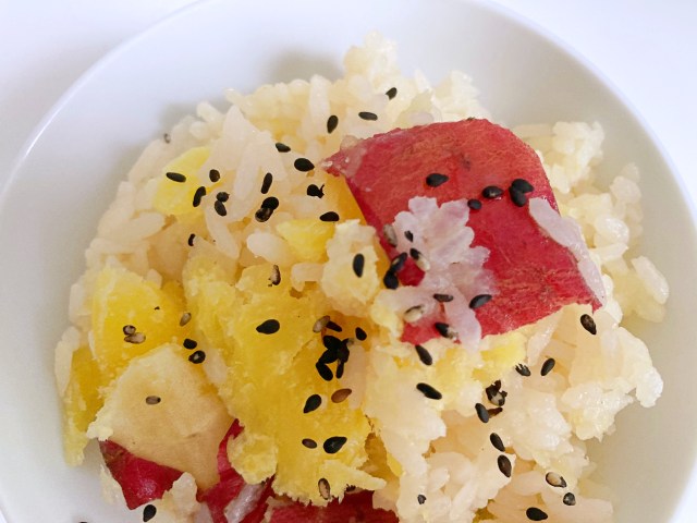 ヒガシマル醤油公式レシピの「1合=1袋」で作れる、超お手軽なさつまいもご飯は、 おいもを皮ごと丸ごと入れて炊くだけなんです。