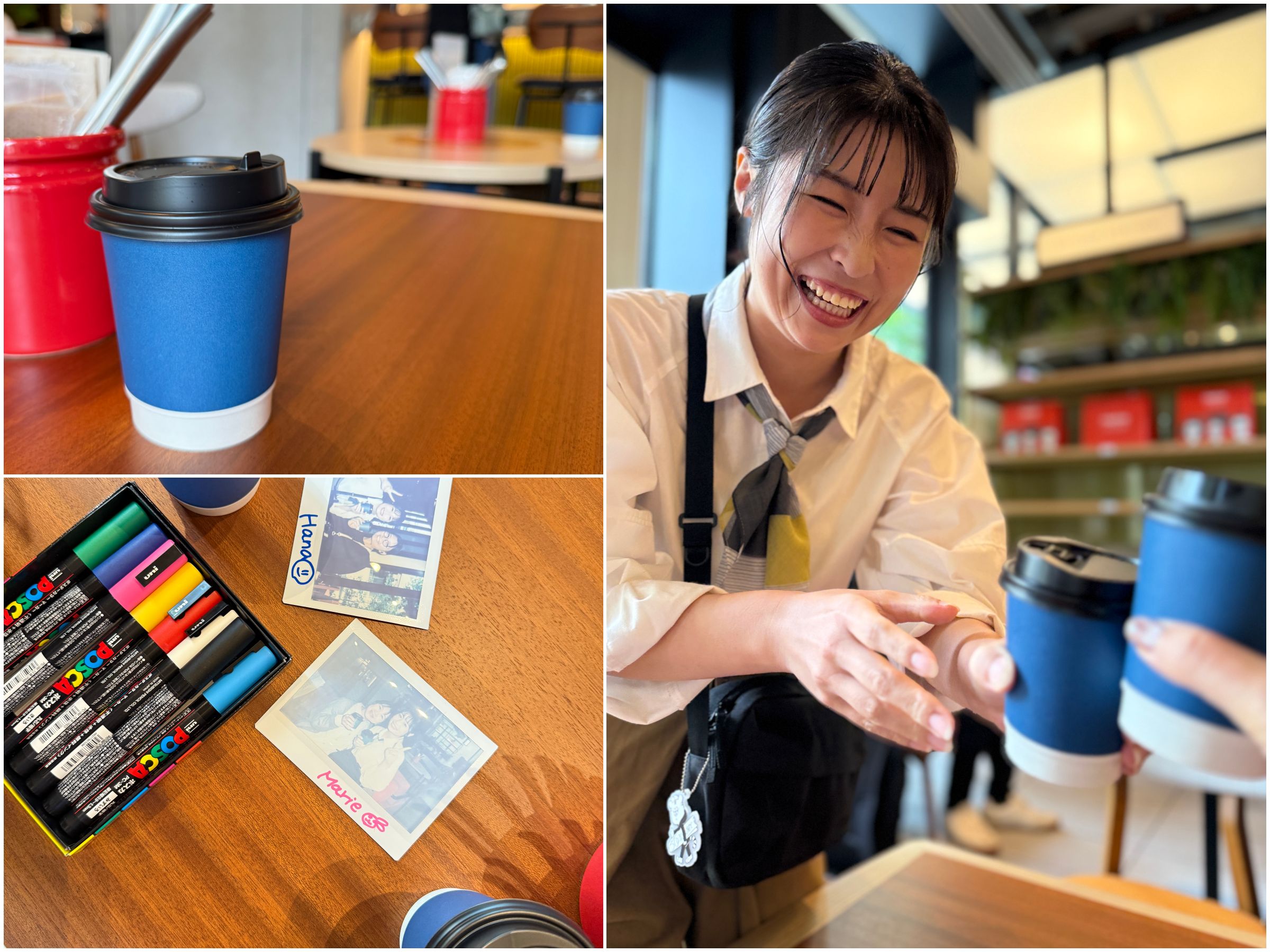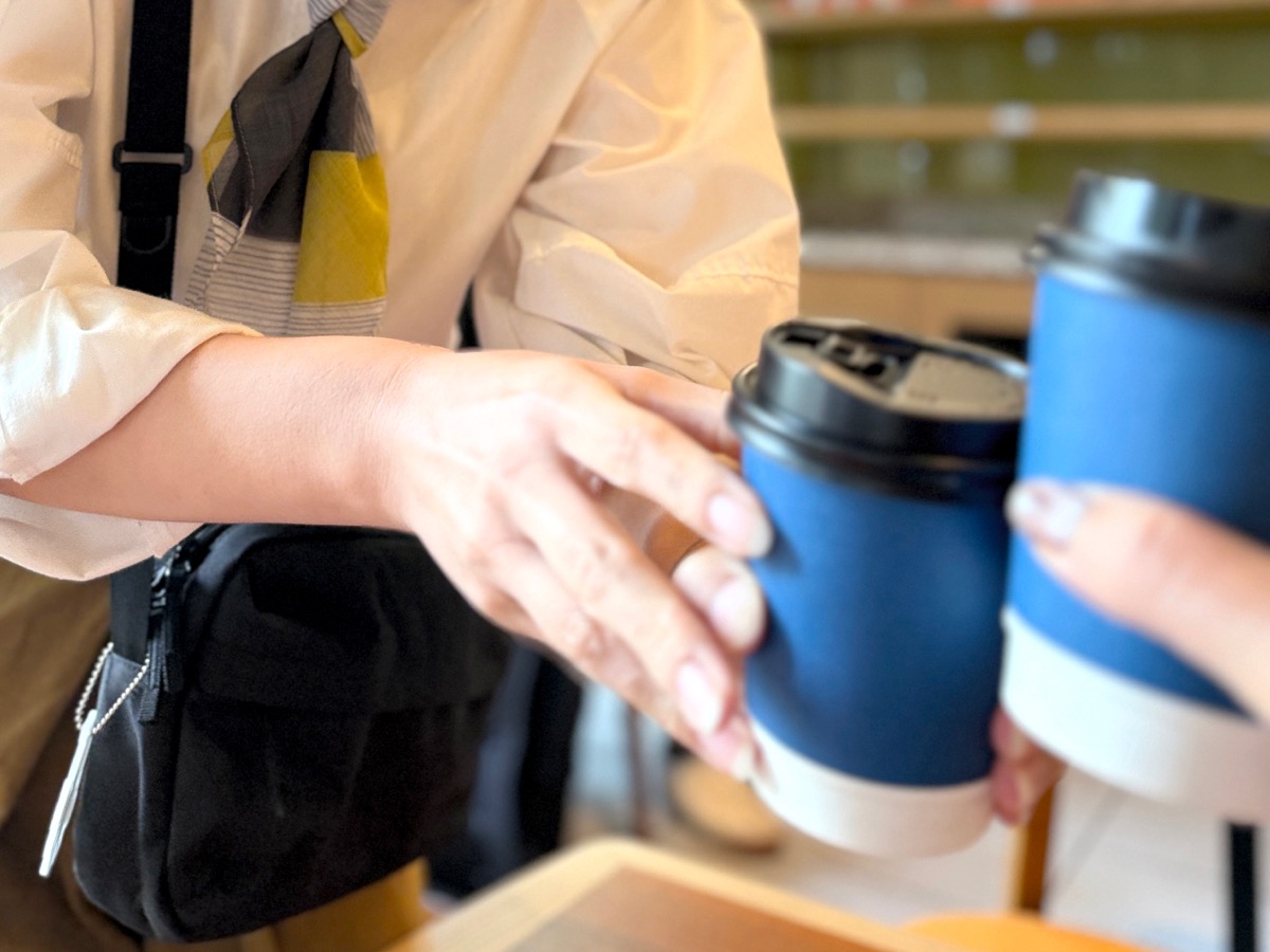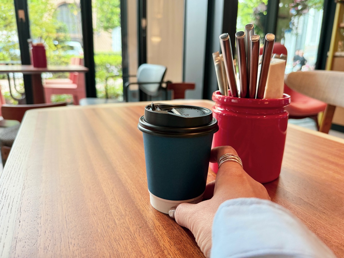 「キャプション by Hyatt 兜町 東京」にある「Talk Shop」でコーヒーを飲んでいると、地元っ子の “莉奈ちゃん” に話しかけられ、街を案内してもらうことに。その場に居合わせた「青いカップを持つ人々」と一緒に、ホテルの外へ出発♪