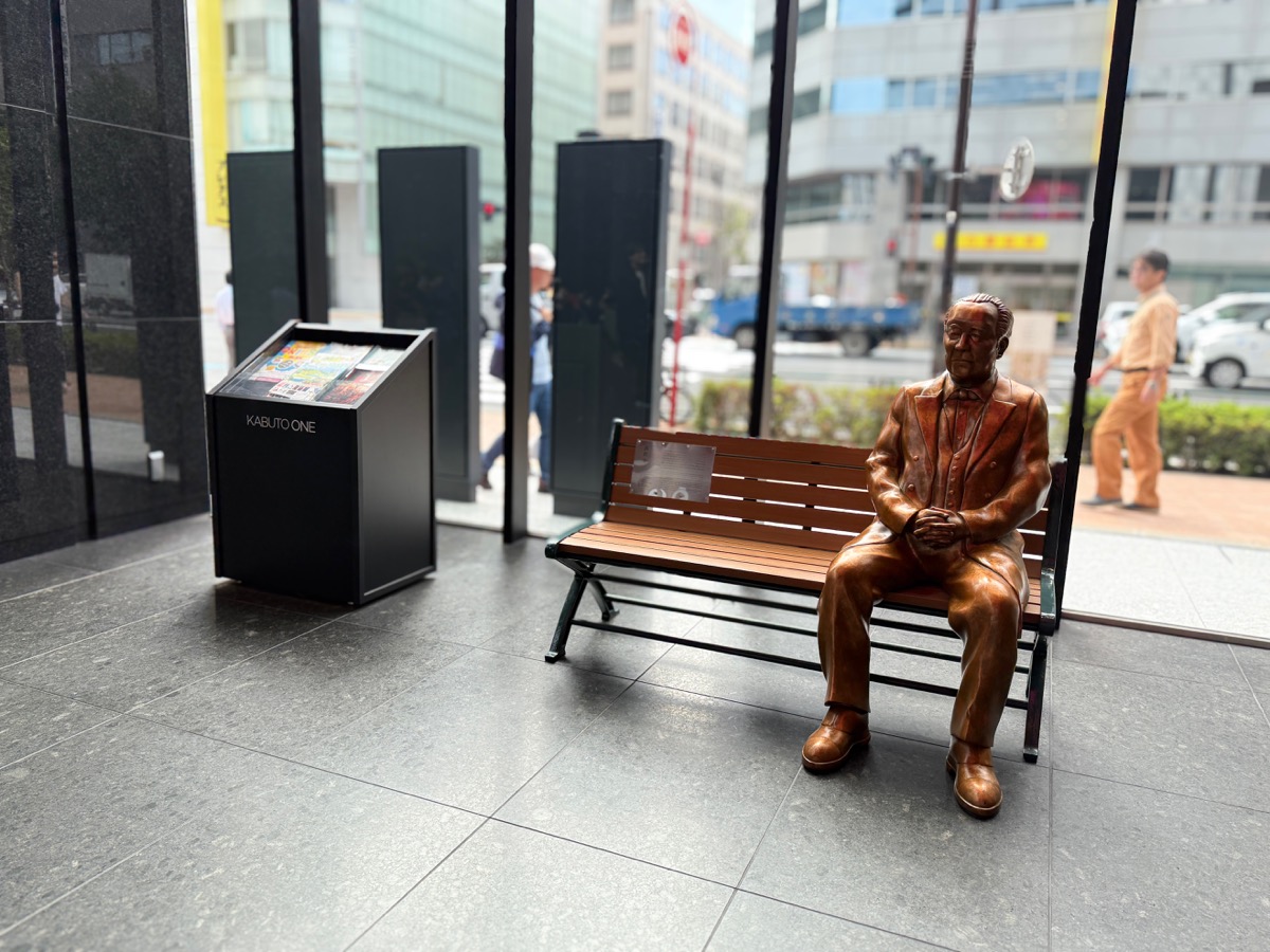 流れで「KABUTO ONE」にある渋沢栄一の等身大像と記念撮影をしたのですが、同行した初対面のライターさんと名刺交換をして実際に写真を送るなど、本当に “偶然の出会い” が生まれたのも、こうしたツアーならではという気がします。