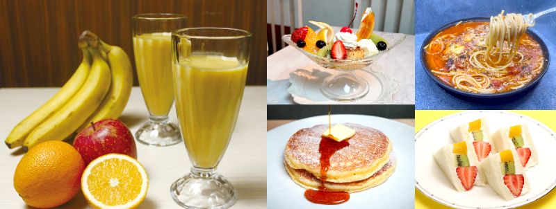 看板メニュー「ミックスジュース」をはじめ、クリームソーダにプリンアラモード、フルーツサンド、バターミルクパンケーキなどが大集合。ハラペコさんには、溢れんばかりのスープといただく「スープスパゲッティ」がぴったりかも。